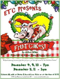 The play will be directed by Diane Thorp and Corey Graf. The production dates will be Dec. 4, 9, 10 at 7:00 p.m. and Dec. 5 and 11 at 2:00 p.m. at the ETC Theater, across from the Cumberland Elementary School. Tickets are $8 and will be sold at Peter and Annie’s on main street and at the door at ETC.